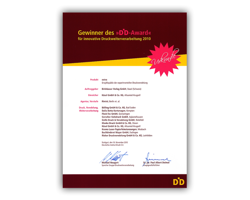 "extra – Die Enzyklopädie der experimentellen Druckveredelung".
