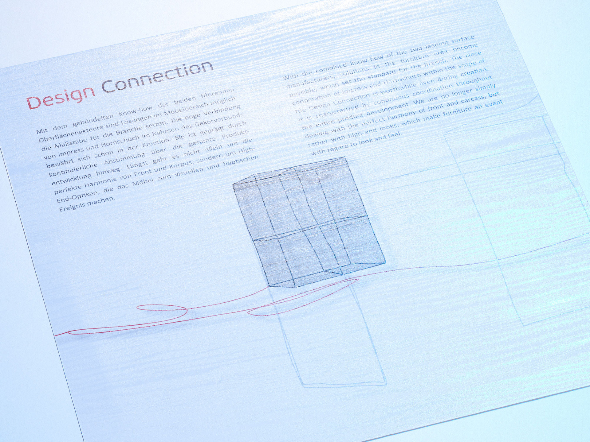 Microscreen-Layer von RIEKER im Hintergrund geben dem Produkt sprichwörtlich Struktur, eine dezente Anwendung mit gerastertem Lack auf Naturpapier.